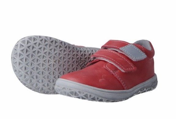 Barefootová obuv z hladké kůže od české firmy Jonap se zapínáním na suchý zip. Textilní podšívka a měkká podešev. Jedná se o flexibilní a lehkou obuv. Pevný opatek. Dostatek prostoru v prstové části. Vyjímatelná stélka bez podpory klenby.