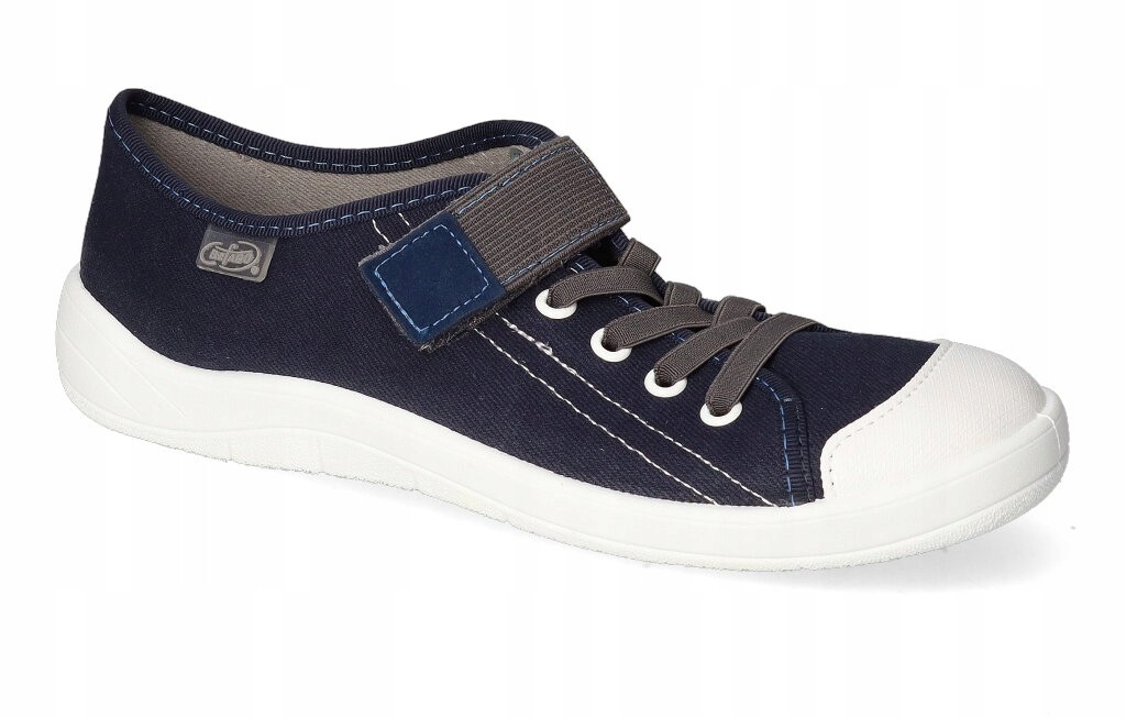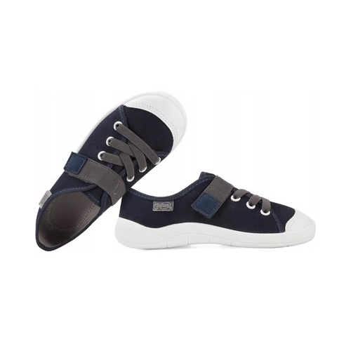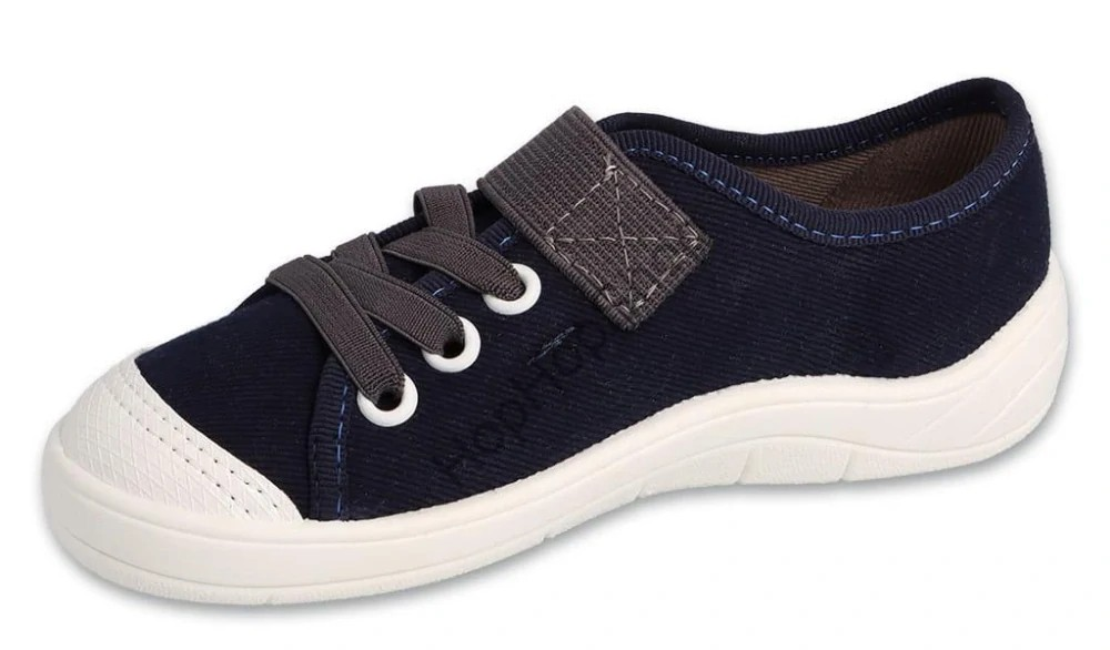 Nízké látkové tenisky od firmy Befado se zapínáním na suchý zip a gumové tkaničky - díky kterému se bota přizpůsobí výšce nártu a tvaru chodidla a zároveň umožní praktické a pohodlné obouvání.