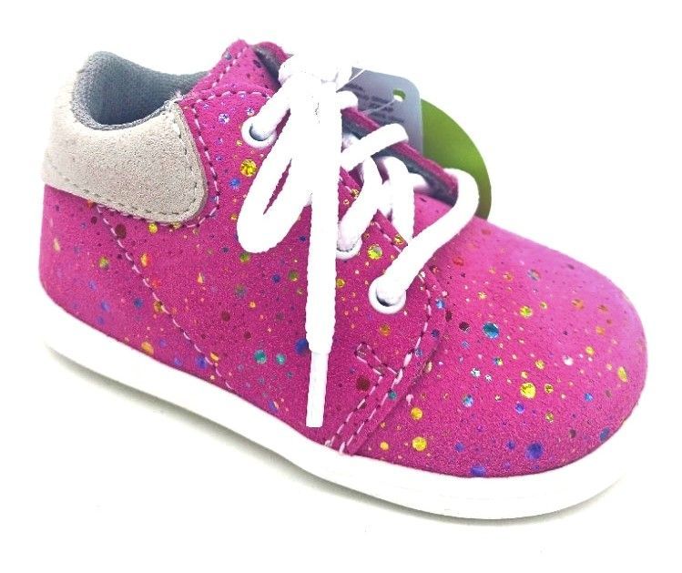 Celoroční kvalitní obuv od české firmy Jonap. Flexibilní obuv na tkaničky je určena pro první krůčky. Svršek: štípenková kůže. Podšívka: textil. Obuv je velmi lehká, maximálně ohebná. Dostatek prostoru v prstové části. Pevný opatek, vyjímatelná anatomicky tvarovaná stélka, protiskluzová podrážka. Délka stélky: vel.18- 116mm, vel.19- 122mm, vel.20- 130mm, vel.21- 136mm, vel.22- 142mm. Určena pro normální i širší nohu.
