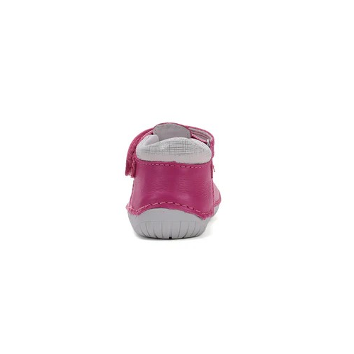 Dívčí barefoot sandálky od maďarské firmy D.D.STEP na suchý zip. Svršek, podšívka: kůže. Zpevněný opatek. Obuv je dostatečně široká pro prsty, velmi flexibilní. Určená pro první krůčky. Vyjímatelná kožená stélka bez podpory klenby. Podrážka je vyrobena z přírodního kaučuku. Podrážka boty se přizpůsobí tvaru chodidla a zajistí maximální pocit z povrchu. Bota umožňuje zapojení všech svalů, šlach a kostí chodidla do chůze, stejně jako při chůzi naboso, a přispívá tak ke zdravému vývoji chodidla