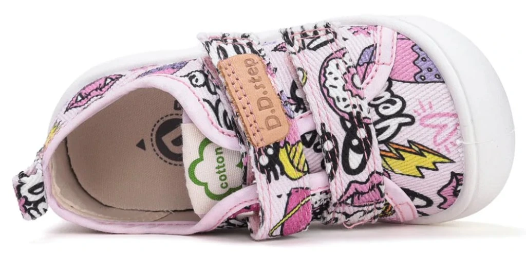 Obuv je velmi lehká, ohebná, s dostatečným prostorem pro prsty. Flexibilní podrážka vyrobena z přírodního kaučuku a cukrové třtiny