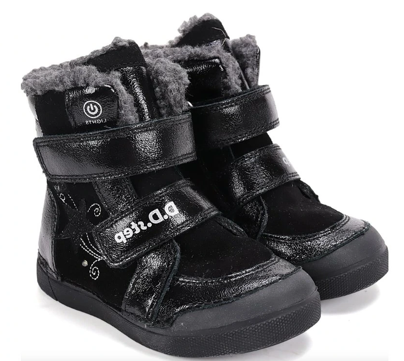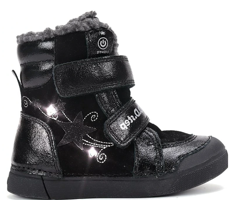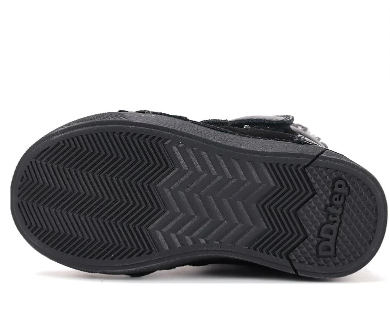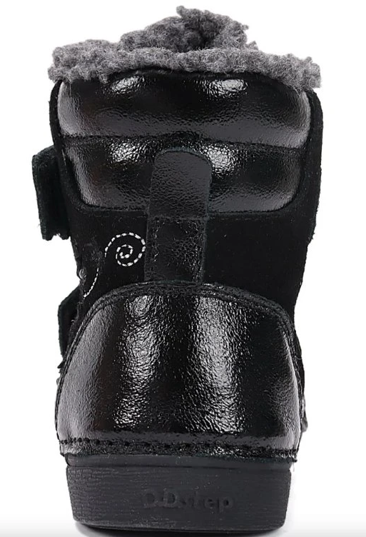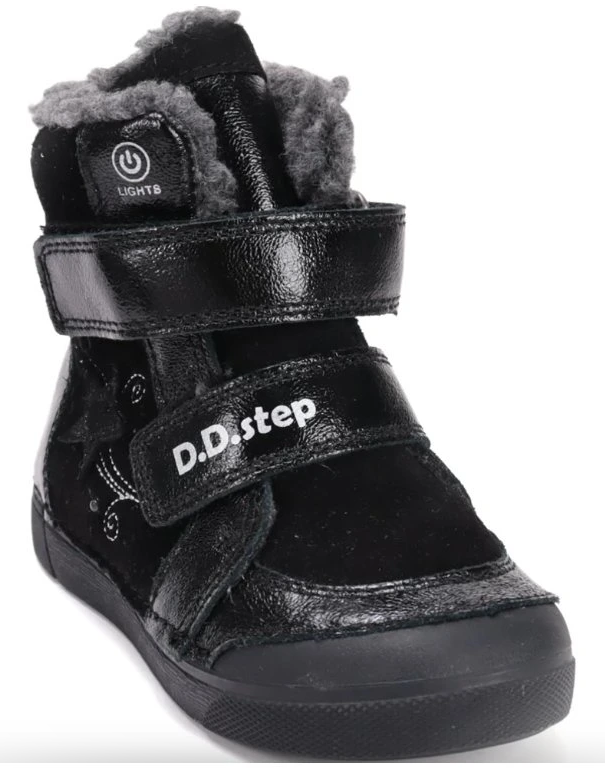 Kotníčková dívčí obuv od maďarské firmy D.D.step se zapínání na suchý zip. Obuv je lehká, flexibilní. Svršek: kůže. Uvnitř zateplené. Protiskluzová podrážka, pevný opatek. Vyvýšená podešev zabraňuje okopání. Vyjímatelná zateplená stélka.