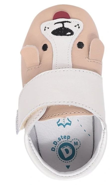 Kožené capáčky od maďarské firmy D.D.step jsou lehké a flexibilní. Určené pro první krůčky, na širší nohu. Zapínání na suchý zip. Vyjímatelná kožená stélka.