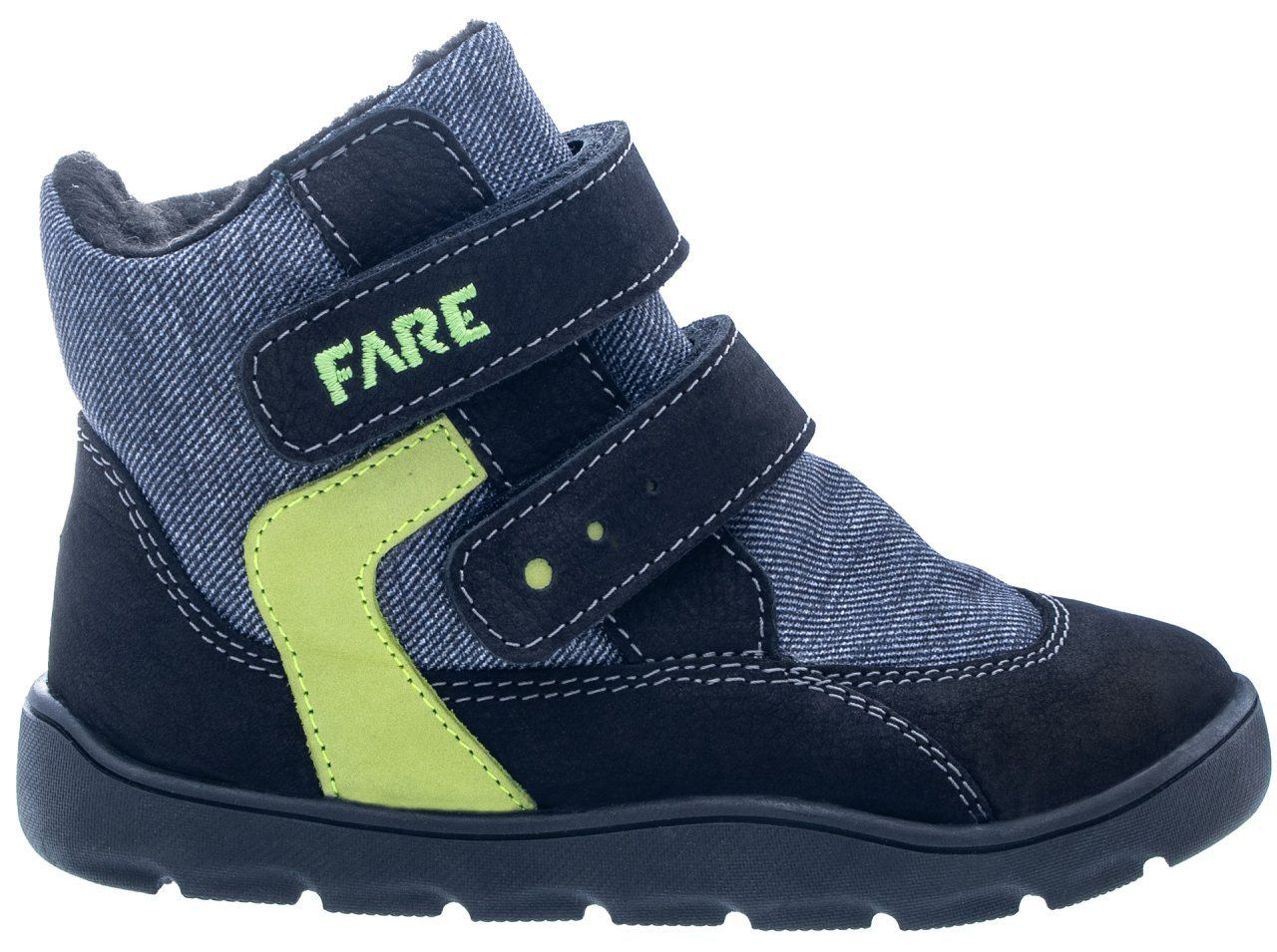 Zimní štróblovaná obuv s membránou a se zapínáním na suchý zip od české firmy Fare.