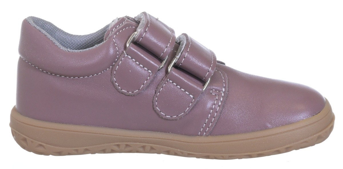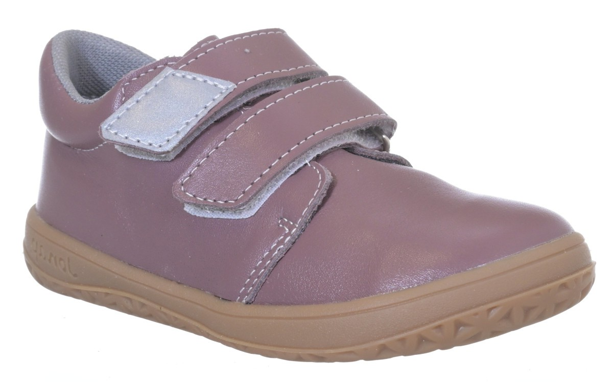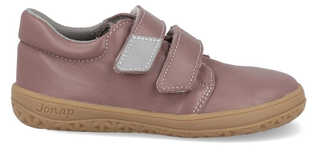 Barefootová obuv z hladké kůže od české firmy Jonap se zapínáním na suchý zip. Textilní podšívka a měkká podešev. Jedná se o flexibilní a lehkou obuv. Pevný opatek. Dostatek prostoru v prstové části. Vyjímatelná stélka bez podpory klenby. Obuv simuluje přirozenou chůzi v přírodním terénu.