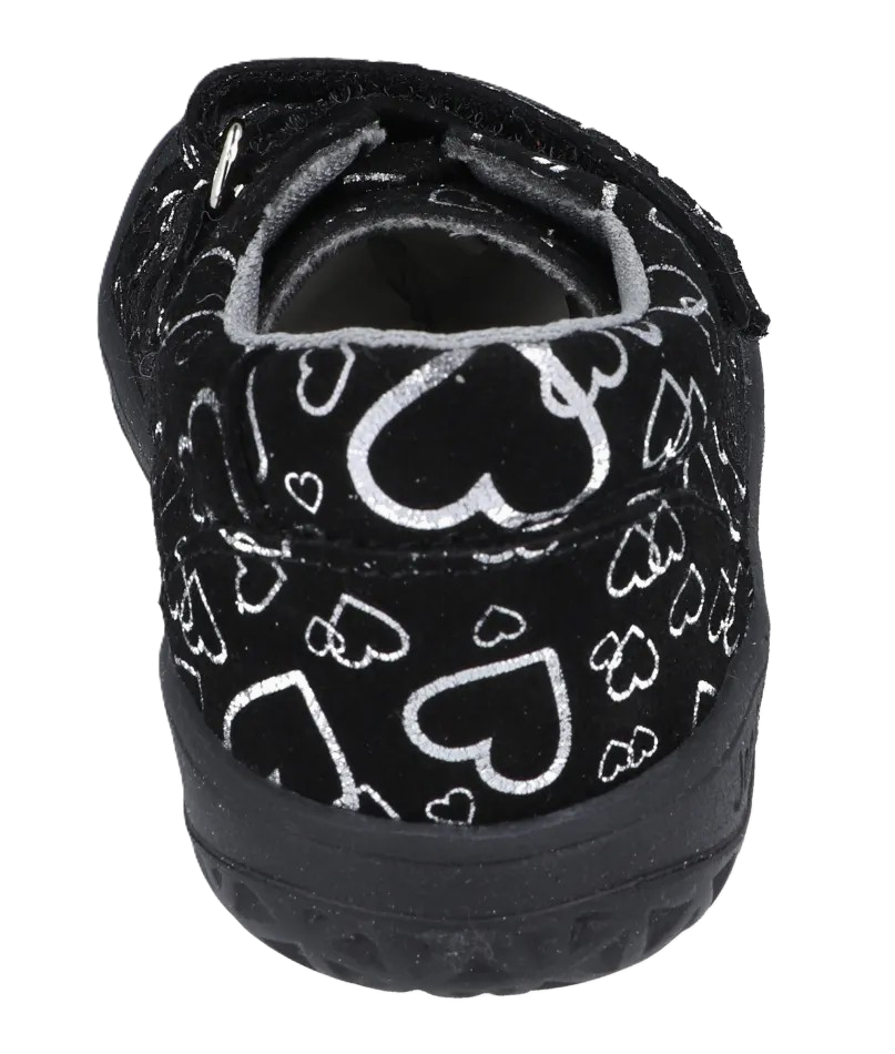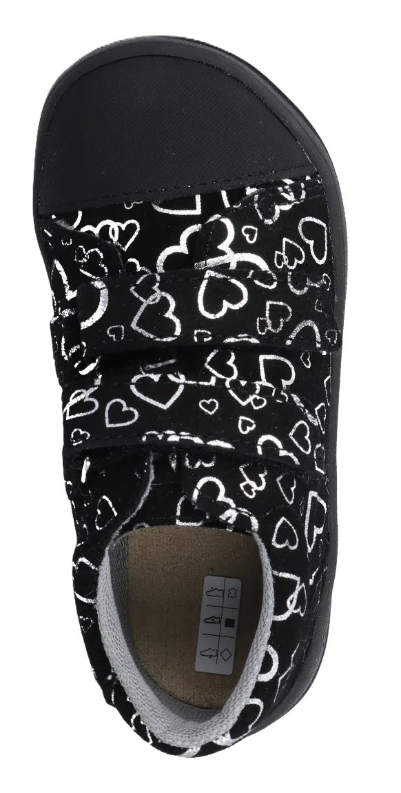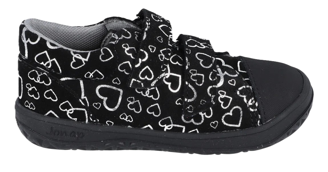 Barefootová obuv z broušené ozdobné kůže od české firmy Jonap se zapínáním na suchý zip. Textilní podšívka a měkká podešev. Jedná se o flexibilní a lehkou obuv. Pevný opatek. Dostatek prostoru v prstové části. Vyjímatelná stélka bez podpory klenby. Obuv simuluje přirozenou chůzi v přírodním terénu.
