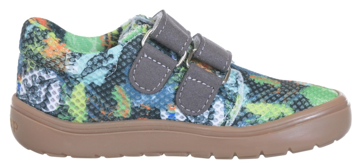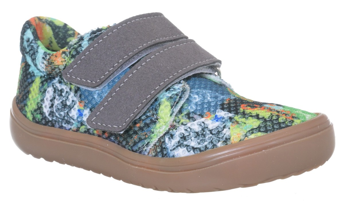 Chlapecké textilní barefoot tenisky od české firmy Jonap. Kvalitní textilní materiál je odolný, ale zároveň nechává nohu dýchat, což je ideální od jara do podzimu. Děti určitě ocení i krásné vzory a snadné zapínání suchým zipem. Protože nemají podšívku, nebude se v nich chodidlo potit. Jsou odlehčené a mnohem prodyšnější než kožené barefoot boty.
