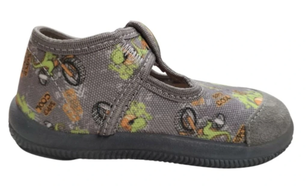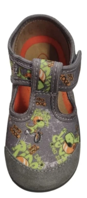 Chlapecké textilní bačkory se zapínáním na suchý zip vyrobeny v Srbsku. Pevný opatek. Vyjímatelná anatomicky tvarovaná stélka. Flexibilní podešev. Podešev vhodná i pro pobyt venku.