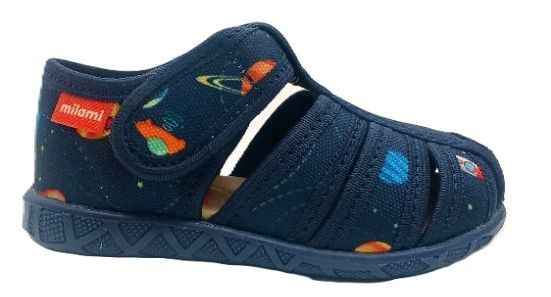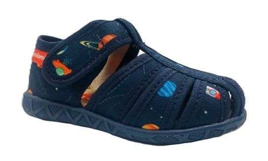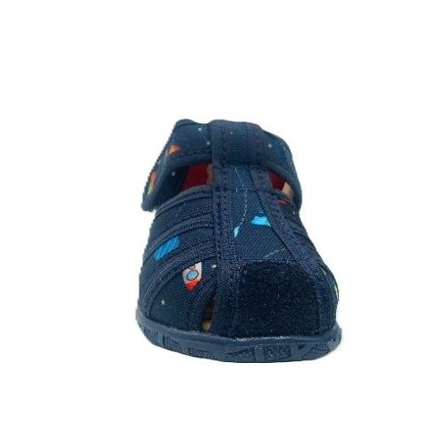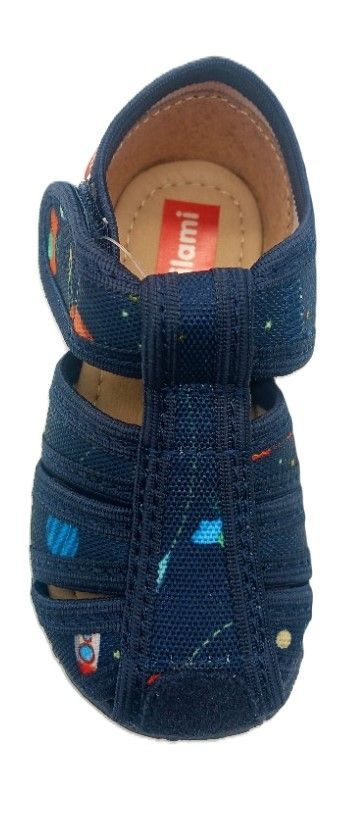 Chlapecké textilní sandálky se zapínáním na suchý zip. Obuv je vyrobena v Srbsku. Kožená anatomicky tvarovaná stélka. Pevný opatek. Špička opatřena praktickým okopem z broušené kůže.