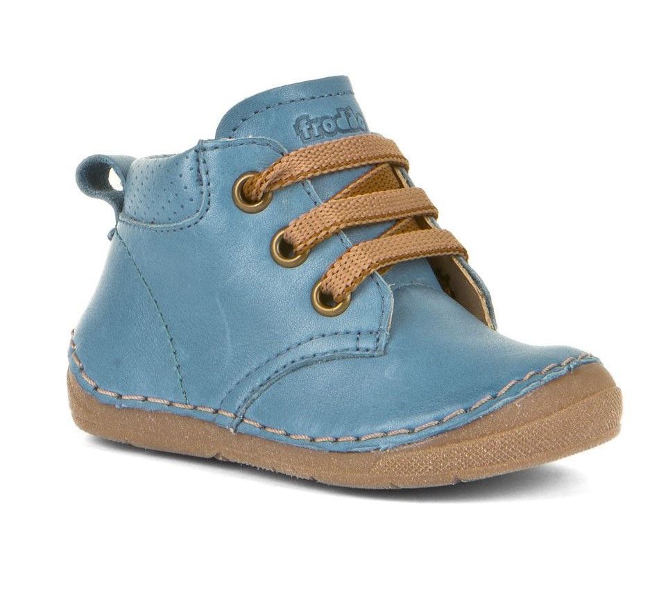 Celoroční kotníčková obuv od chorvatské firmy FRODDO na tkaničky. Flexibilní obuv /velice ohebná, měkká podrážka, rozšířená prstová část/. Pevný opatek drží nožičku dítěte ve správné poloze. Celokožená obuv je vyrobena pouze z přírodních materiálů, barvené rostlinnými barvivy, použité lepidlo na bázi vody. Kožená vyndavací antibakteriální stélka. Délka vnitř.stélky: vel.21- 132mm, vel.22- 138mm. Obuv je určena pro normální a širší nohu. V krabici naleznete dvoje tkaničky.