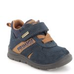 Celoroční kotníčková obuv od italské firmy Primigi s membránou Gore-tex. Gore-Tex® membrána - je tenká vrstva, tvořena z 1,4 miliardami trychtýřových pórů. Tyto póry zajišťuji maximální možnost prodyšnosti a zároveň brání promoknutí. Tím se výrobky s použitím této technologie stávají takřka nepromokavé a zároveň maximálně prodyšné. Zapínání na suchý zip. Svršek: kůže. Podšívka: textil. Pevný opatek. Vyjímatelná stélka. Vyvýšená podešev zabraňuje okopání. Protiskluzová podešev se zadním tlumícím systémem- vzduchová kapsa, která uvnitř tlumí otřesy při chůzi. Délka stélky: vel.21-138mm, vel.22- 144mm, vel.23- 150mm, vel.24- 156mm, vel.25- 162mm, vel.26- 168mm.Obuv je určena na normální nohu.