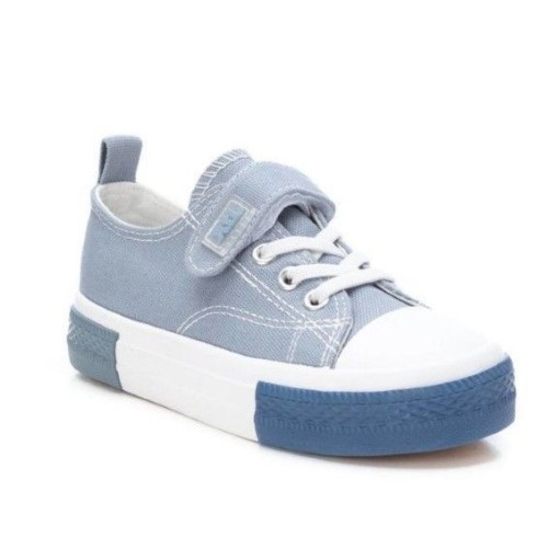 Tenisky Xti Kids od španělské firmy Xti. Vyrobeny z odolného vlákna. Uzavření pomocí přilnavého proužku s ozdobnými elastickými šňůrami. Bota se silnější protiskluzovou gumovou podrážkou. Podšívka: textil. Mírně zpevněný opatek. Vyvýšená podešev zabraňuje okopání. Měkká stélka s paměťovou pěnou.