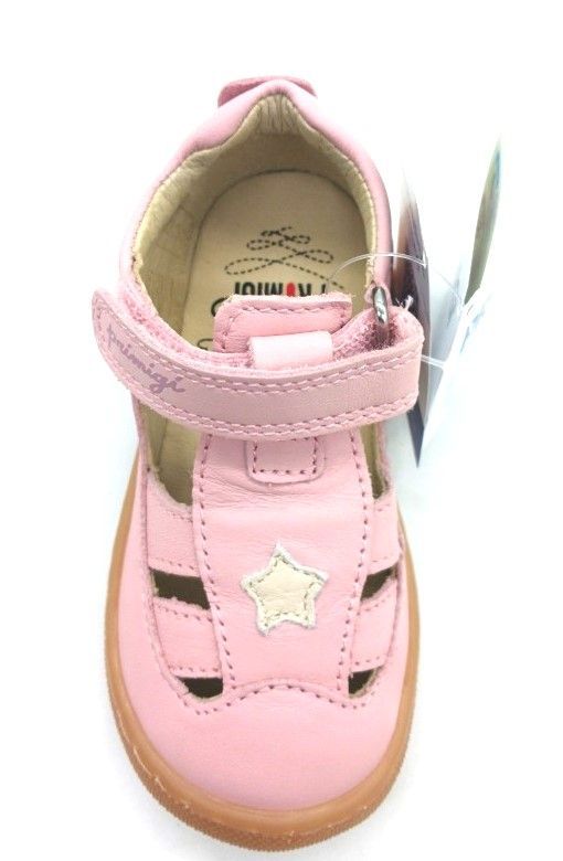 Dívčí barefoot sandály na suchý zip od italské firmy Primigi. Svršek, podšívka: kůže. Obuv je rozšířena v prstové části. Vyjímatelná kožená stélka bez podpory klenby. Mírně zpevněný opatek. Vyvýšená podešev zabraňuje okopání.