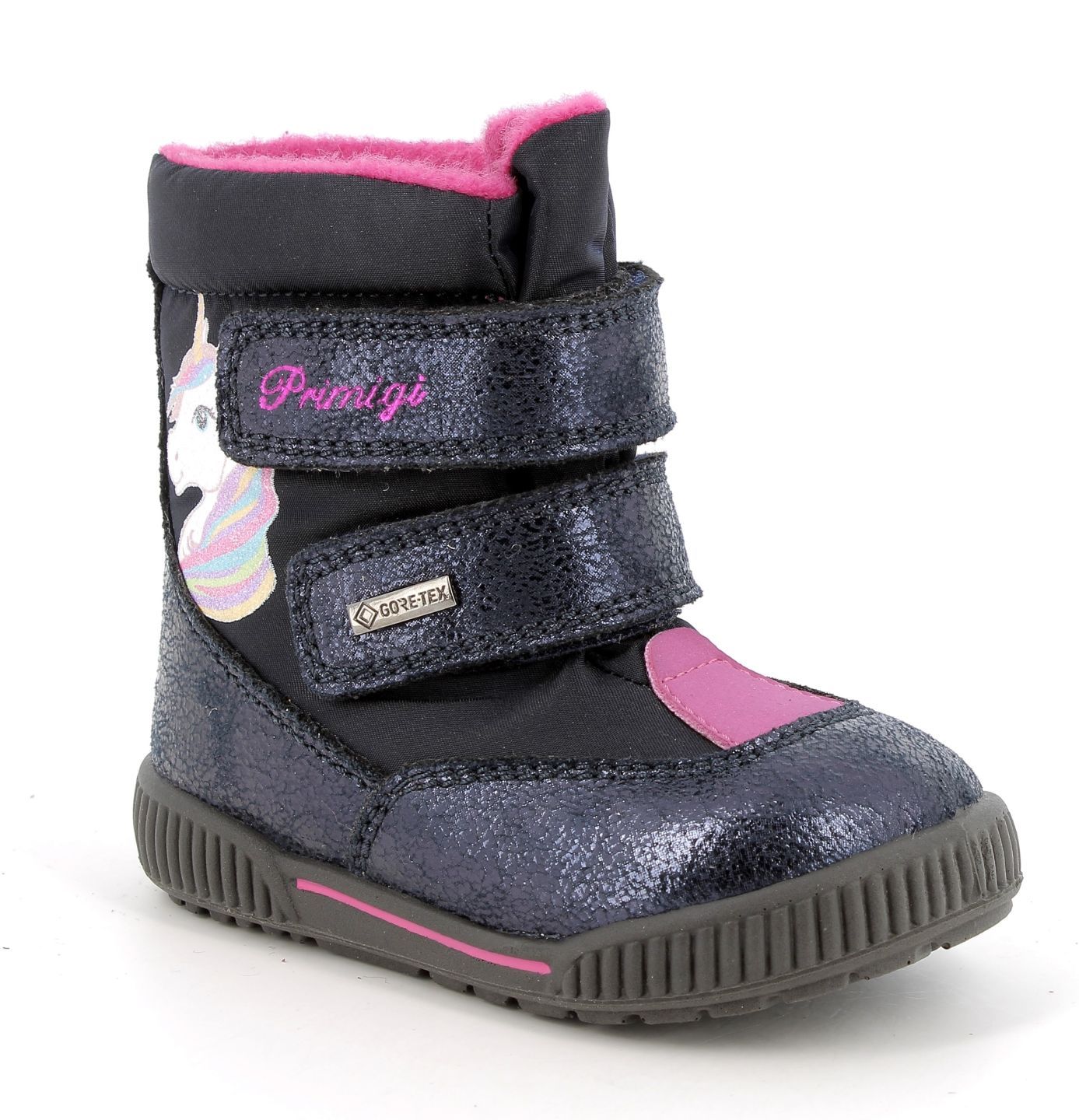 Zimní kotníčková obuv italské firmy Primigi s membránou Gore-tex na suchý zip. Gore-Tex® membrána - je tenká vrstva, tvořena z 1,4 miliardami trychtýřových pórů. Tyto póry zajišťuji maximální možnost prodyšnosti a zároveň brání promoknutí. Tím se výrobky s použitím této technologie stávají takřka nepromokavé a zároveň maximálně prodyšné. Obuv má pevný opatek, maximálně ohebnou podešvi, jsou extrémně lehké. Svršek: kombinace syntetika, textil. Uvnitř zateplené. Vyjímatelná zateplená stélka. Vyvýšená podešev zabraňuje okopání. Protiskluzová podrážka. Zadní tlumící systém je navržený tak, aby poskytl nožkám ochranu před nerovnostmi terénu. V podešvi, v místě paty je vytvořena tvz. vzduchová komora, která tlumí běžné mikro nárazy provázející chůzi. Délka stélky: vel.21- 140mm, vel.22- 146mm, vel.23- 152mm, vel.24- 160mm, vel.25- 166mm, vel.26- 172mm, vel.27- 178mm, vel.28- 184mm, vel.29- 190mm. Obuv je určena pro normální nohu.