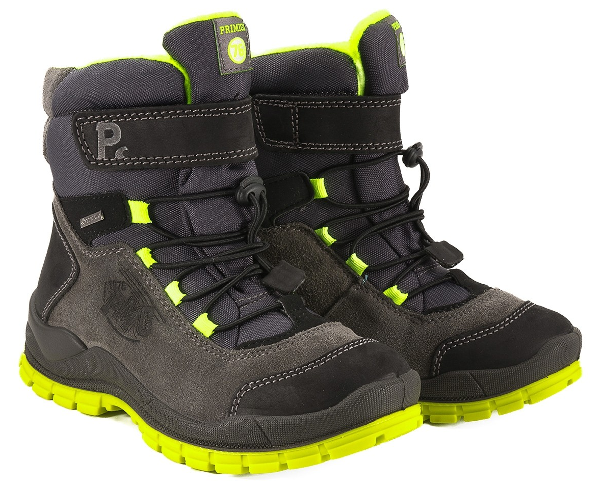 Zimní obuv italské firmy Primigi s membránou Gore-tex na suchý zip. Gore-Tex® membrána - je tenká vrstva, tvořena z 1,4 miliardami trychtýřových pórů. Tyto póry zajišťuji maximální možnost prodyšnosti a zároveň brání promoknutí. Tím se výrobky s použitím této technologie stávají takřka nepromokavé a zároveň maximálně prodyšné. Obuv má pevný opatek, maximálně ohebnou podešvi, jsou extrémně lehké. Svršek: kombinace kůže, textil. Uvnitř zateplené. Vyjímatelná zateplená stélka. Vyvýšená podešev zabraňuje okopání.