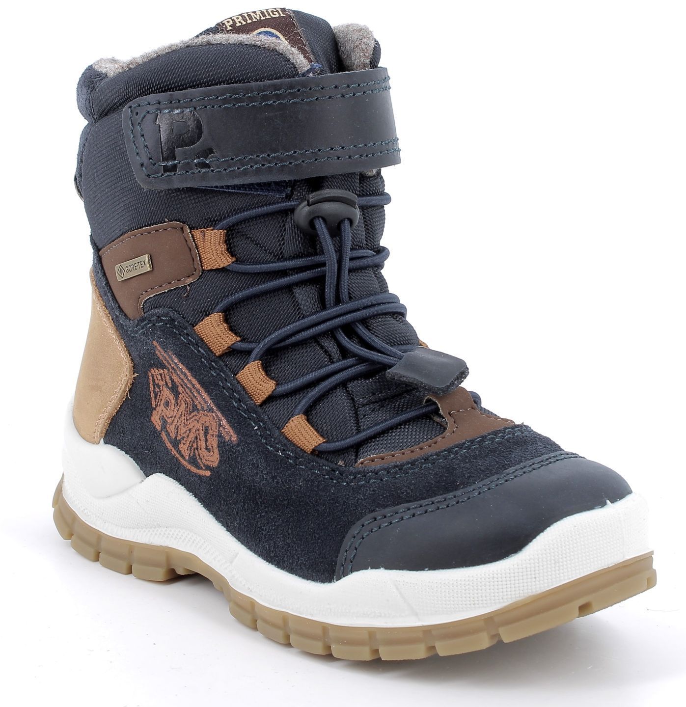 Zimní obuv italské firmy Primigi s membránou Gore-tex na suchý zip. Gore-Tex® membrána - je tenká vrstva, tvořena z 1,4 miliardami trychtýřových pórů. Tyto póry zajišťuji maximální možnost prodyšnosti a zároveň brání promoknutí. Tím se výrobky s použitím této technologie stávají takřka nepromokavé a zároveň maximálně prodyšné. Obuv má pevný opatek, maximálně ohebnou podešvi, jsou extrémně lehké. Svršek: kombinace kůže, textil. Uvnitř zateplené. Vyjímatelná zateplená stélka. Vyvýšená podešev zabraňuje okopání.