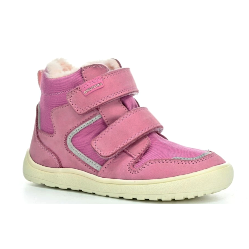 Zimní BAREFOOT obuv od slovenské firmy Protetika na suchý zip. Obuv s membránou Pro-tex udržuje nohu v teple a suchu, odpuzuje vodu a je prodyšná. TEX membrána je ultratenká vrstva mezi vnějším materiálem boty a koženou nebo vlněnou podšívkou v jejím nitru. Membrána je z vnější strany vodoodpudivá, ale umožňuje únik vlhkosti v opačném směru, tedy z chodidla přes membránu ven. Výsledkem je prodyšnost a zdravé klima chodidel.