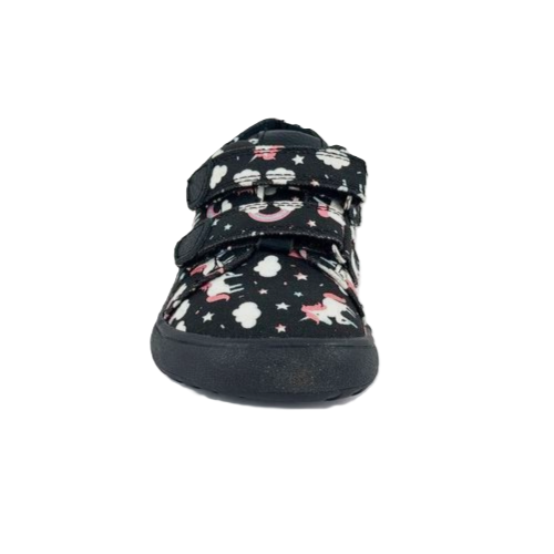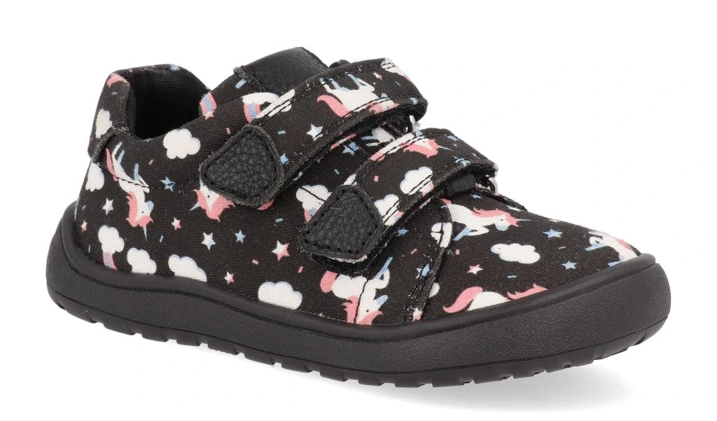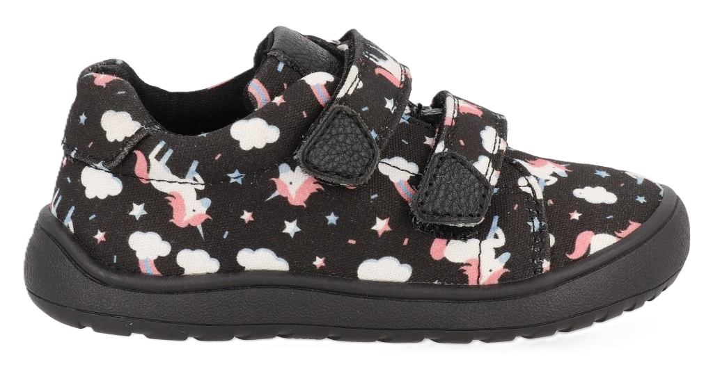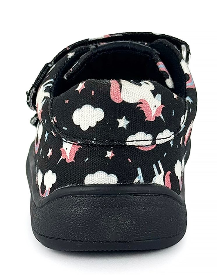 Dívčí barefoot plátěnky s motivem jednorožce od slovenské firmy Protetika se zapínáním na suchý zip.