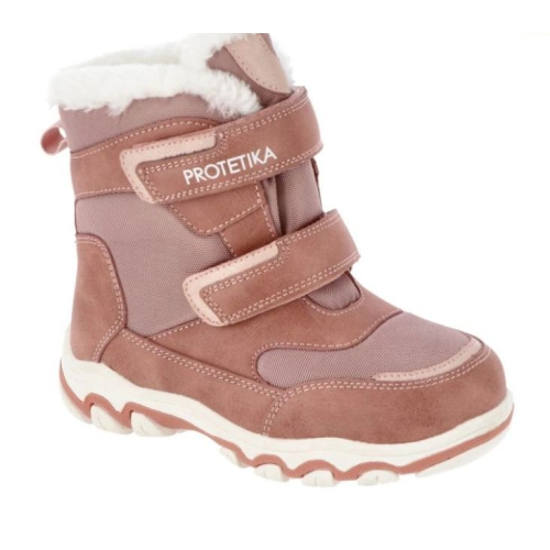 Dívčí zimní obuv od slovenské firmy Protetika se zapínáním na suché zipy. Díky membráně PRO-TEX je obuv nepromokavá. Svršek: nepromokavá textilie a přírodní kůže. Uvnitř je obuv zateplená umělou kožešinou. Pevný opatek. Vyjímatelná textilní stélka s podporou klenby. Protiskluzová podešev.