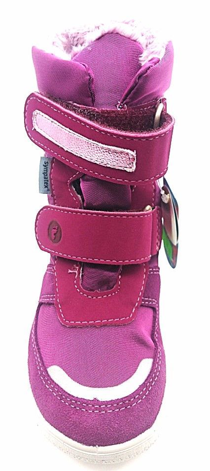 Plyšová teplá podšívka, která vykukuje z nártového dílu v kontrastní barvě, přímo láká k nazutí. Díky membráně SympaTex boty chrání dětské nožičky i před vlhkostí.