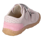 Flexibilní kotníčková obuv od německé firmy Ricosta se zapínáním na suchý zip. Vyrobena z velmi jemné kvalitní kůže pocházející z ekologických evropských koželužen. Jejich další předností je zvýšená ochrana okopu na špičce, takže nedochází k jejich rychlému opotřebení ani u začínajících "chodců" při lezení po čtyřech či občasném zakopnutí. Zpevněný opatek. Vyjímatelná vnitřní stélka je vyrobena z vepřovice - ta umožní, že si dítě samo vyšlápne anatomický tvar stélky podle své potřeby.