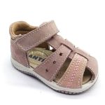 Celokožené dívčí sandálky se zapínáním na suchý zip. Pevný opatek. Měkká kožená stélka. Protiskluzová podešev. Obuv je lehká, flexibilní. Bota se zadním tlumícím systémem- vzduchová kapsa, uvnitř tlumí otřesy při chůzi.
