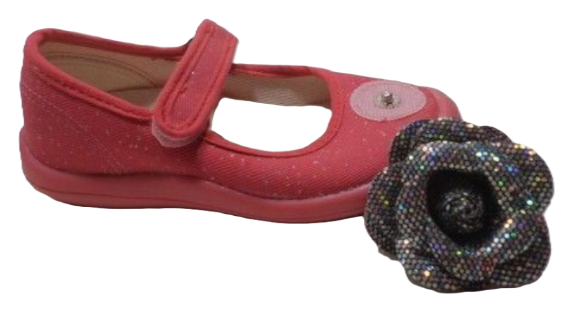 Dívčí balerínky z kvalitního textilu. Tvar boty respektuje tvar dětské nohy a nebrání jejímu přirozenému vývoji. Obuv je vyrobena v České republice. Má certifikaci Žirafa. Na přední straně boty je kolečko suchého zipu a uprostřed cvočka - místo připravené pro ozdobičku. Ozdobičky lze dokupovat. Mají textilní podšívku a anatomicky tvarovanou koženou vkládací stélku, která je prodyšná, omyvatelná a díky aktivnímu uhlí i aktibakteriální. Paměťový efekt pomáhá tlumit nárazy.
