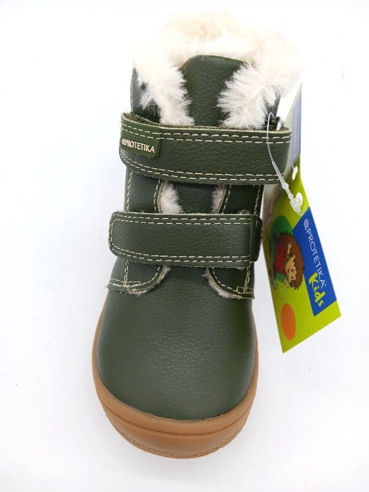 Zimní obuv od slovenské firmy Protetika na suchý zip. Svršek: hladká kůže. Uvnitř zateplené. Flexibilní podešev. Pevný opatek. Vyjímatelná zateplená anatomicky tvarovaná stélka. Vyvýšená podešev zabraňuje okopání.