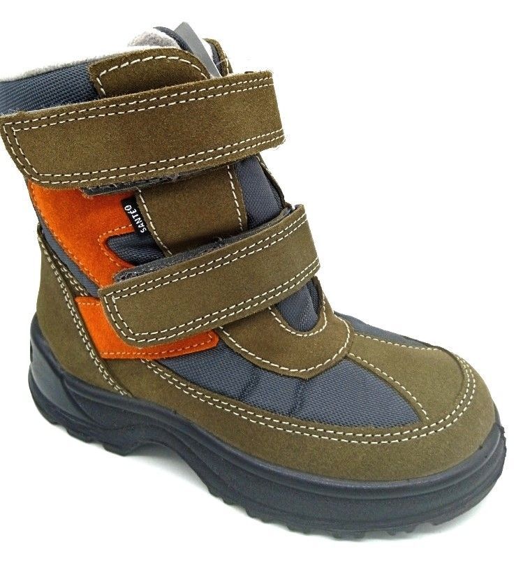 Zimní obuv na suchý zip od české firmy Santé. Protiskluzová podrážka, vyvýšená část podešve v přední části chrání špici proti okopání. Obuv je lehká, flexibilní, uvnitř zateplená. Svršek: kůže v kombinaci s textilem. Vyjímatelná stélka. Délka vnitř.stélky: vel.27- 172mm, vel.28- 178mm, vel.29- 184mm, vel.30- 192mm.